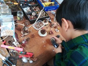 この時期は、幼稚園でせっせと作ったものを