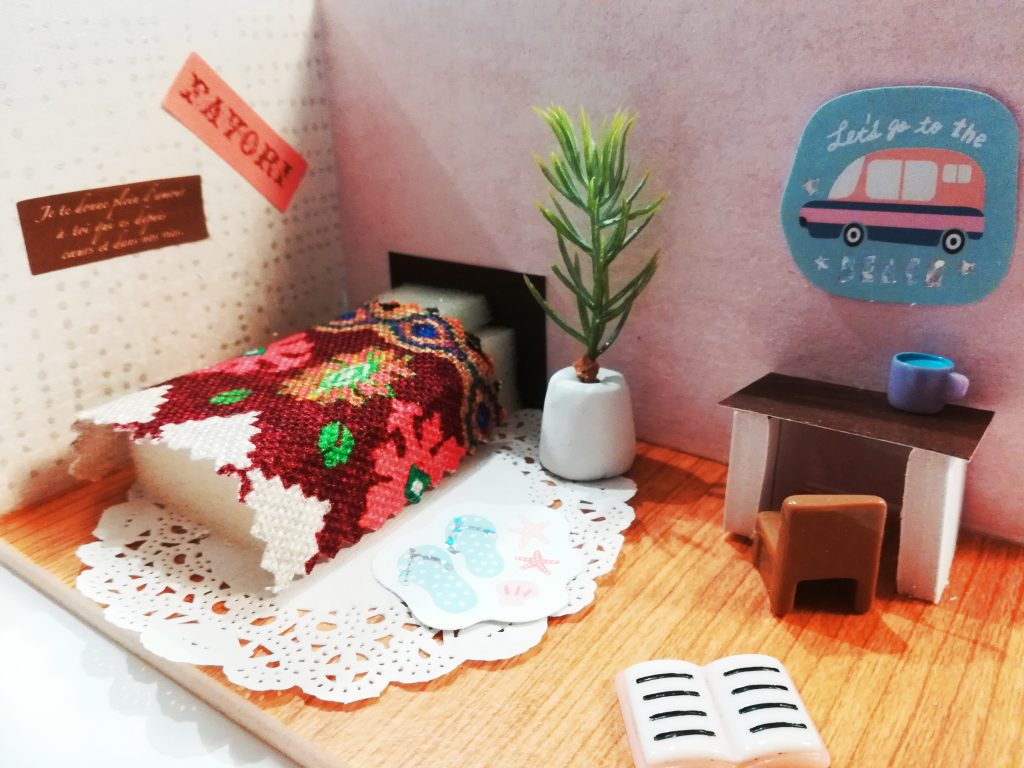 6畳程度のお部屋を模型で再現し、自分の好きなイメージでお部屋をコーディネートしてもらいます。