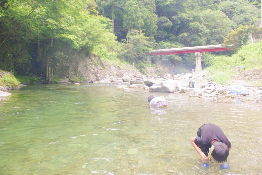 宿の前には川が流れていて、子供も遊ぶことができます。遊んだあとそのまま温泉に入って、冷えた体を温めて。(何度入ったことかw)