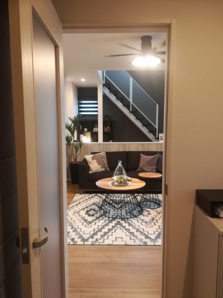 まず、トップの写真はリビングのドアを開けて時に見える風景なのですが、もう一歩入ると、こんな感じに見えます。