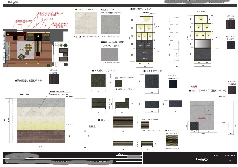 既製の商品は、商品画像(やイメージ)をそのまま載せますが、造作家具の場合は、イラストレーターで作成したものを載せます。
