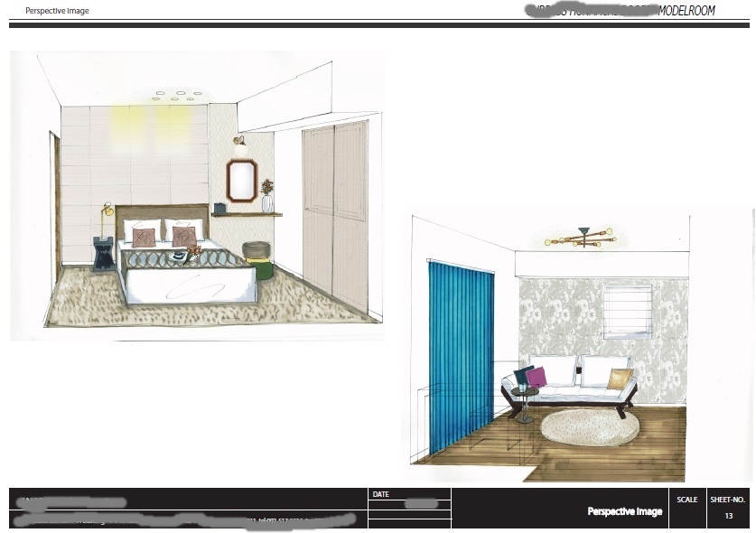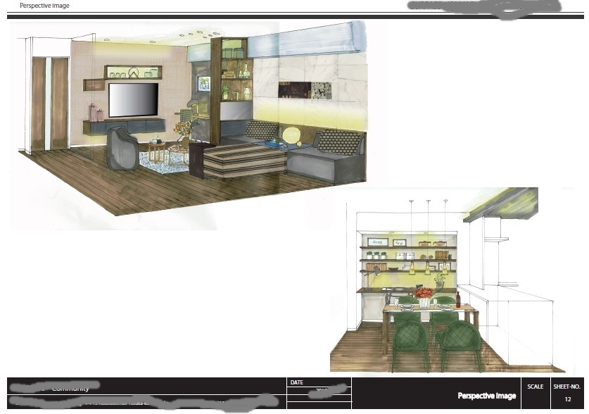 レイアウト図面もイラストレーターで作成しています。着彩や家具、照明の表現が多彩にできます。