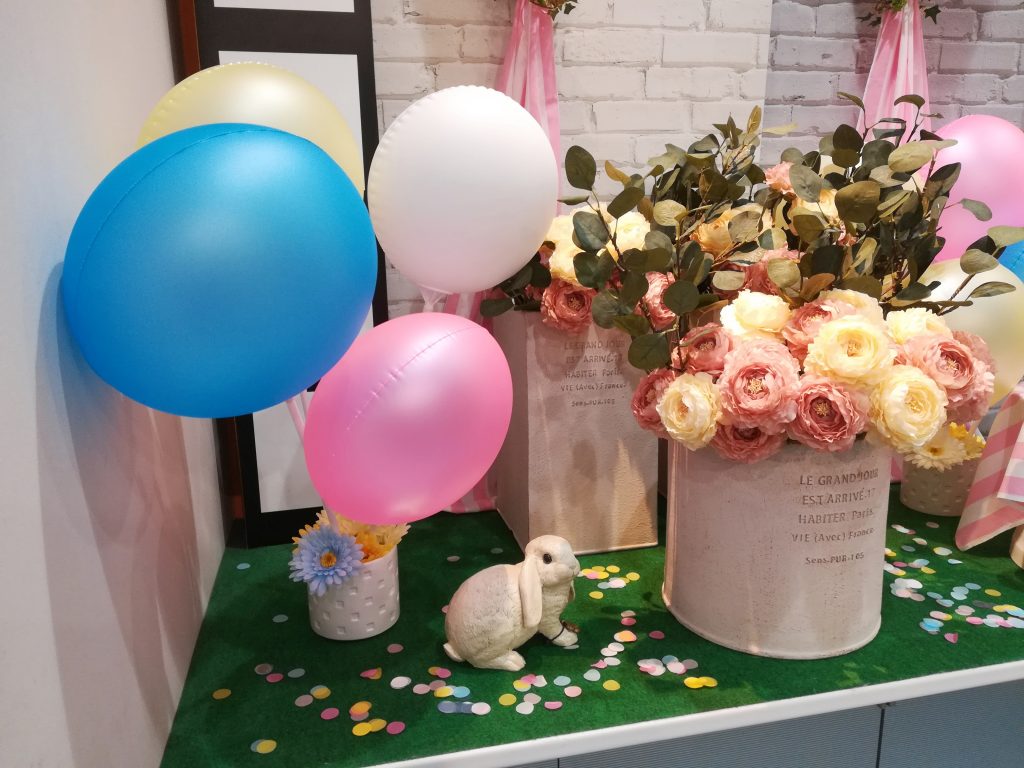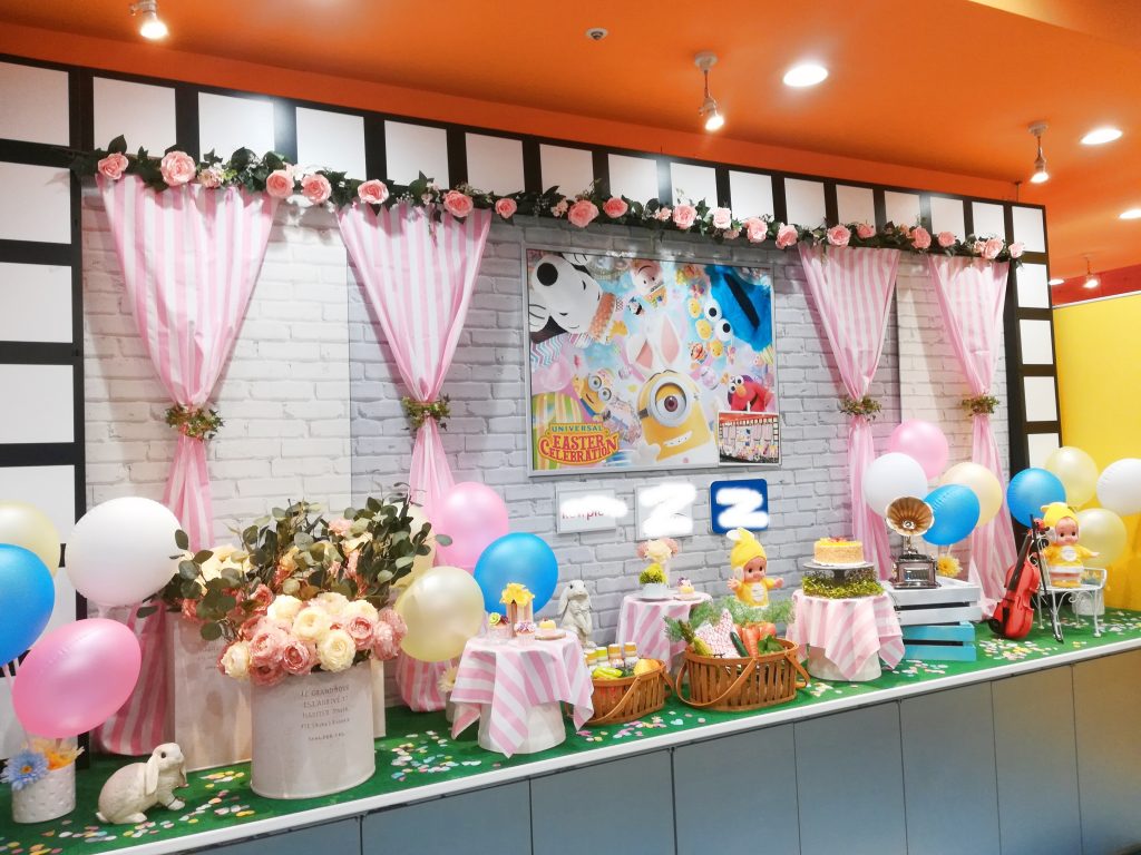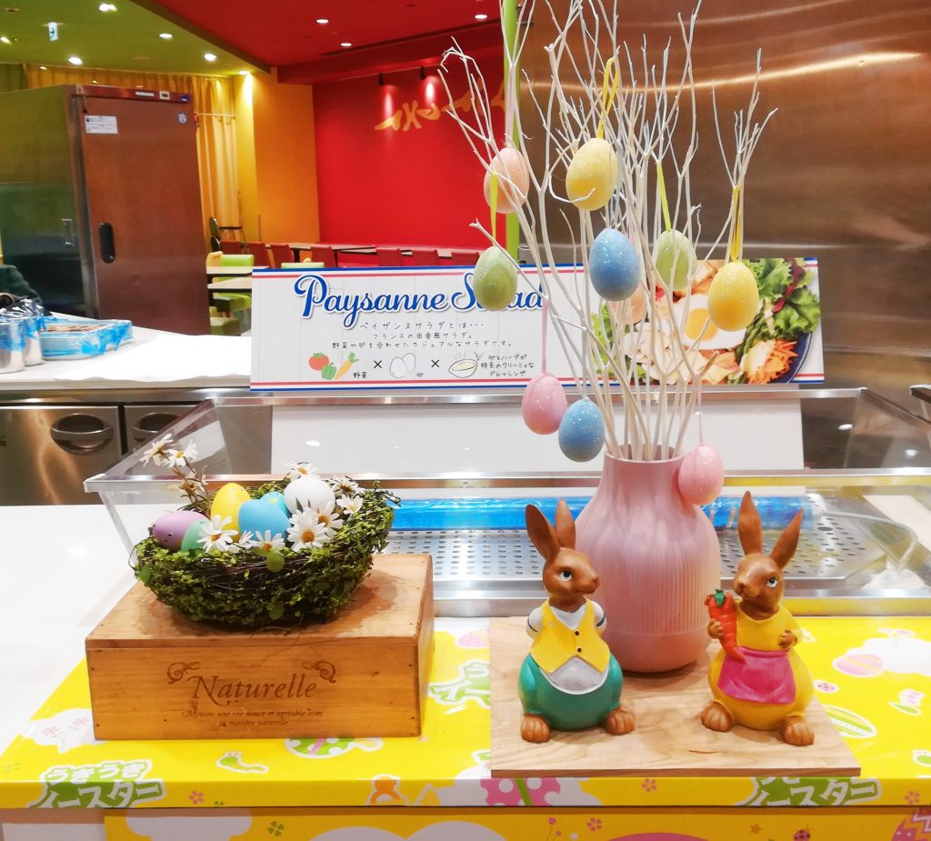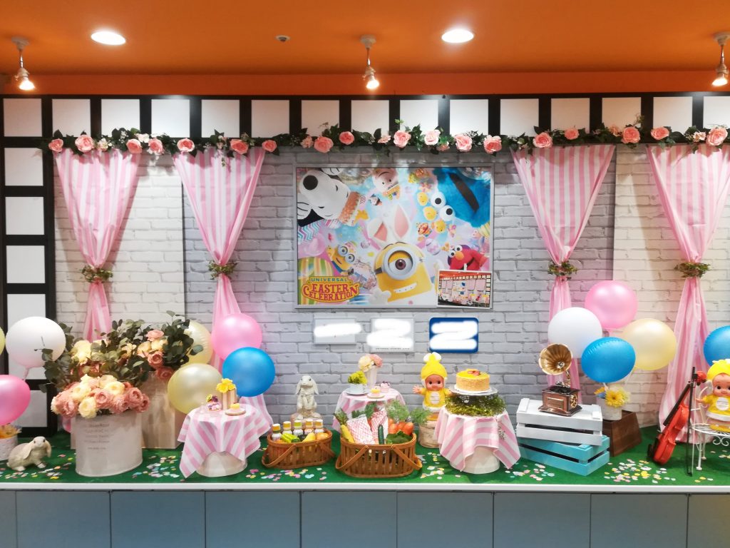 ホテル近鉄ユニバーサルシティ内にあるレストラン「イーポック」様の2020年版イースターディスプレイ。