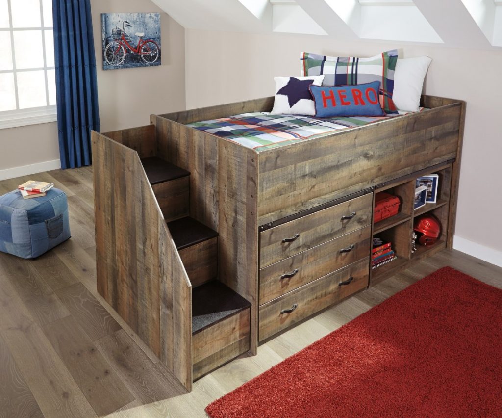 このロフトタイプは、例えば大きな部屋で、間仕切り替わりにもなりますね。屋根裏部屋っぽくて、楽しそう。しっかり作られた階段も憎いね!