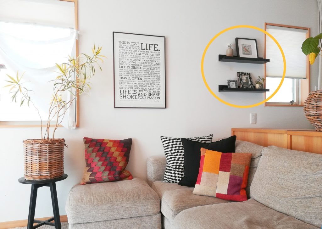 イケアのこの棚も、本当は違う位置に付けたかったのですが、下地の関係でこの位置になったんだよなぁ。