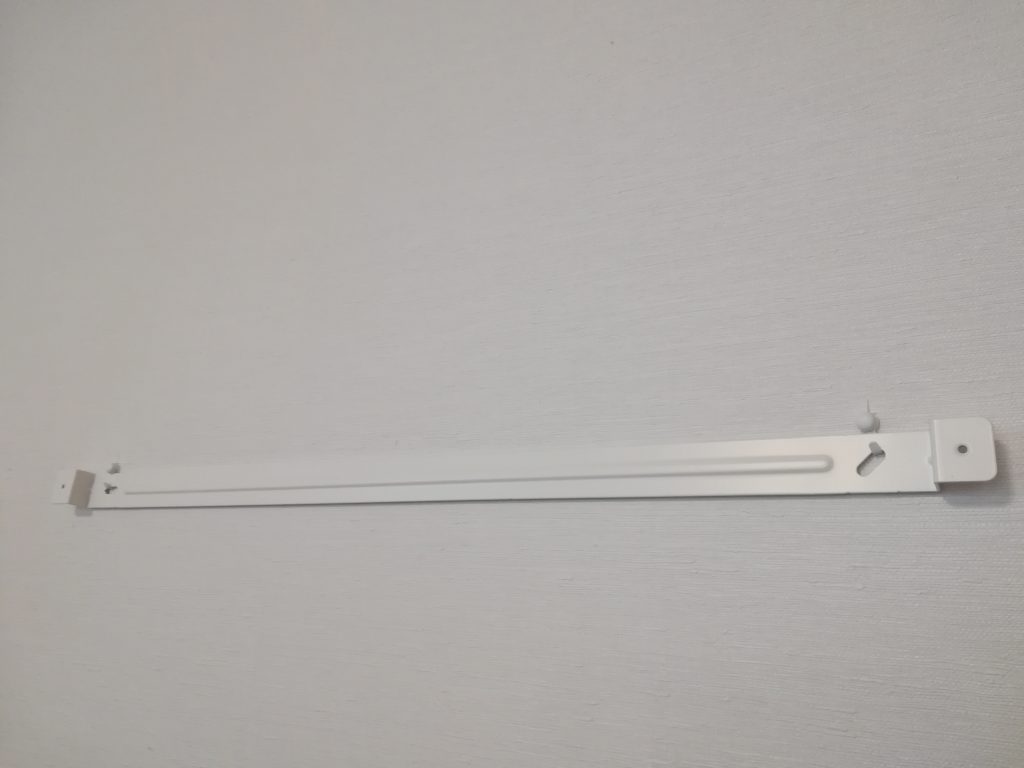 フックに、有孔ボードを取り付けるための付属のバーを引っ掛けます。