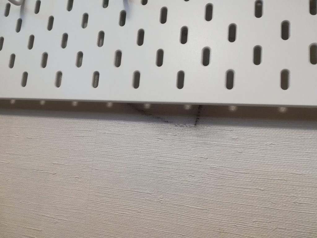 それを隠すべく、このIKEAの有孔ボードを取り付けようと購入したのですが、イケアの商品のビス留めタイプの物は、下地が無いと難しいのですよねー。。。