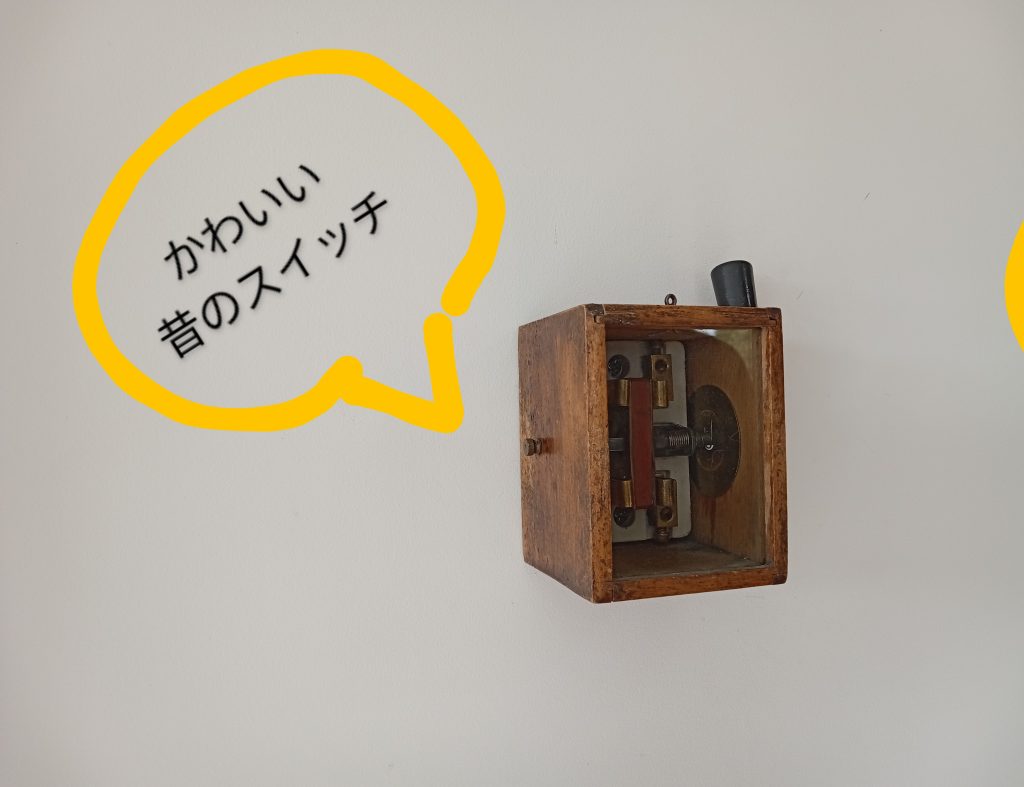 ショールーム入り口の看板。隣のレトロなスイッチが可愛い♪
