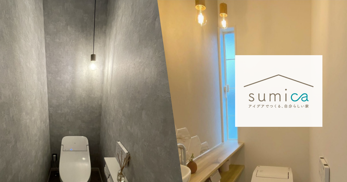 定期的にインテリア関係の情報発信をさせていただいております、eo光様の暮らしのwebサイト “sumica”にて、「トイレおしゃれ化計画」と称して、床・壁・照明(ペンダント)のご提案をさせていただきました^^
