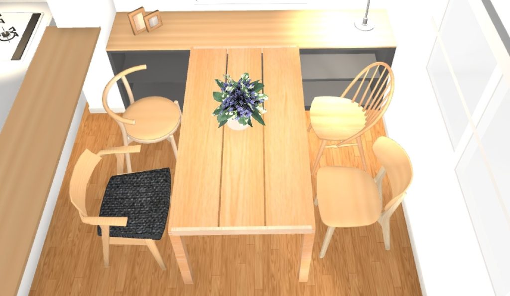 テーブルとチェアがセットになった、「ダイニング〇点セット」は、組合せもテーブルとチェアの高さ関係も考えられているので間違いはありませんが、チェアをバラバラにするとワンランクアップのオシャレなインテリアになります。